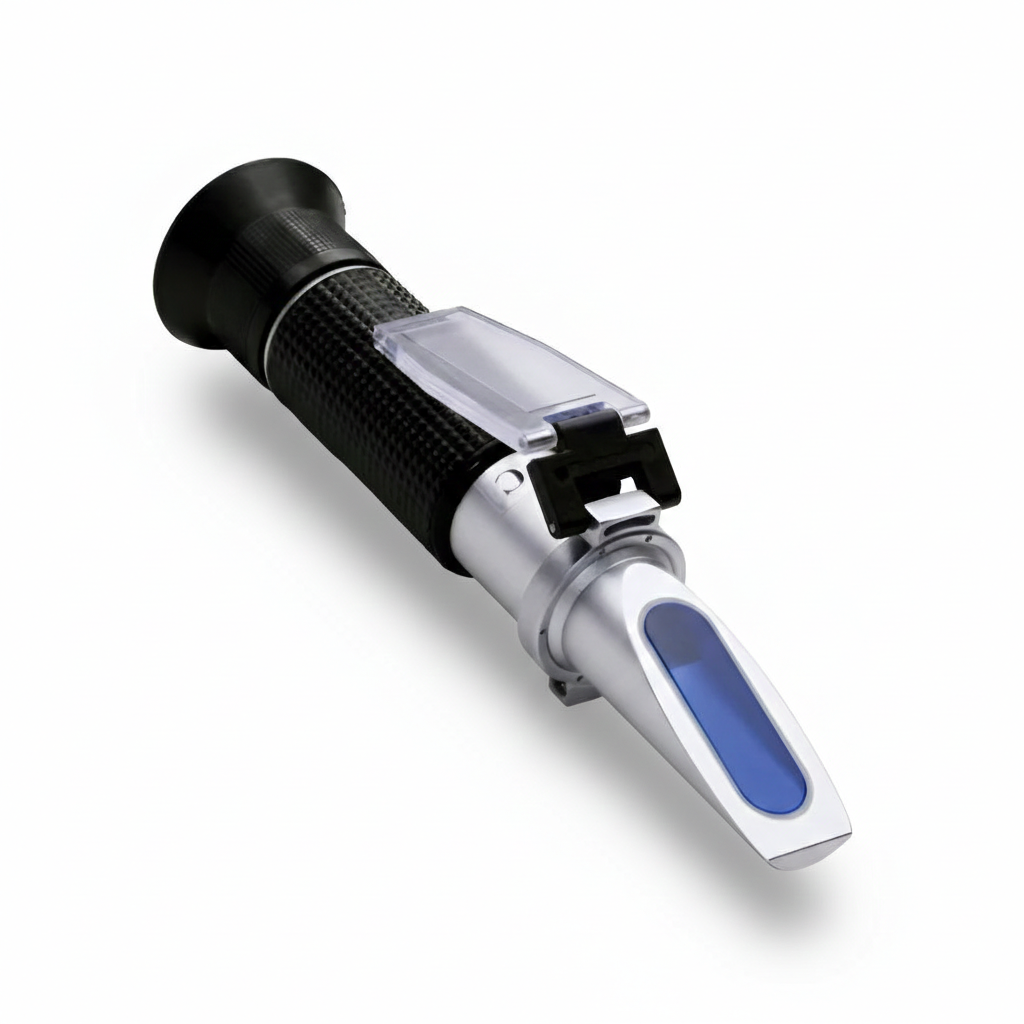 Rango Amplio (0-80% Brix): Especialmente calibrado para medir desde soluciones de baja densidad hasta jarabes y mieles de alta concentración.