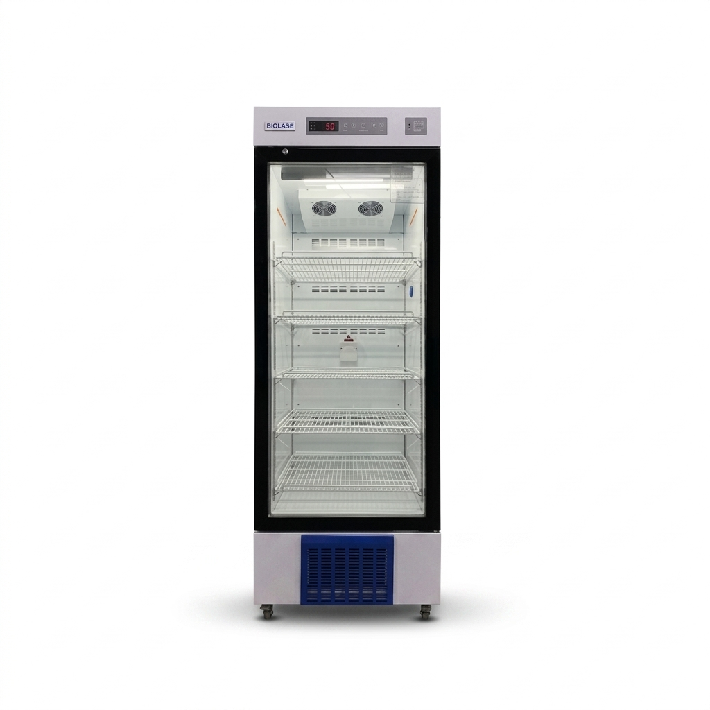 REFRIGERADOR DE LABORATORIO Y FARMACIA (CAPACIDAD 468L) de BIOBASE El modelo BPR-5V468 representa la excelencia en refrigeración científica, ofreciendo un equilibrio perfecto entre volumen de almacenamiento y estabilidad térmica. Utiliza un sistema de descongelación automática y circulación de aire forzado para evitar fluctuaciones de temperatura y la formación de escarcha, asegurando que cada estante mantenga las condiciones exactas configuradas. Su panel de control digital externo permite monitorear los parámetros sin abrir la puerta, minimizando la pérdida de frío. Además, cuenta con iluminación LED interna de bajo consumo y estantes ajustables que permiten optimizar el espacio según las necesidades específicas de almacenamiento del laboratorio.